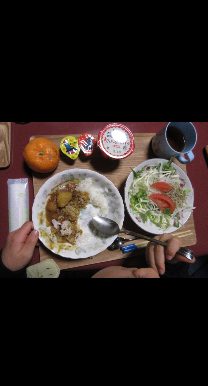 カレー・サラダ・プリン・みかんを18食提供しました(^-^)