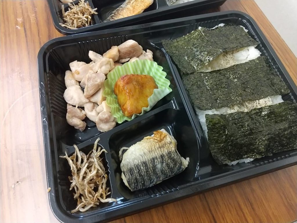 新米ご飯の上にとろろ昆布と海苔を載せ、鶏ももの塩だれ焼き、サバの塩焼き、じゃこの佃煮、大学芋,今回も鶏もも以外はすべて頂き物で調理させていただきました。