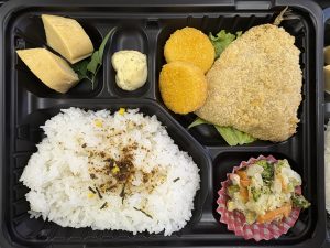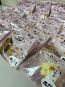 10/26 子ども元気食堂 2024.10.302024.10.26 11:00〜12:00 お弁当(メイン:アジフライ・帆立風フライ)を42食提供しました(^_^)/ 湯之町ベーカリーさまのパン、栴檀さまのお菓子もお渡ししました☆彡