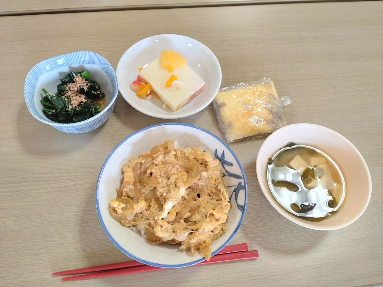 親子丼、ホウレン草のお浸し、味噌汁を48食提供しました(^^)