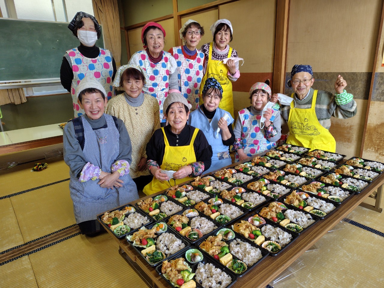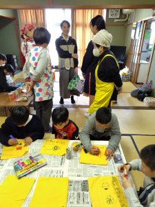 2/26 星岡なかよし子ども食堂 2025.03.032025.02.26 16:00-18:00 鶏の唐揚げ、里芋煮、ホーレン草の胡麻和え、卵焼き、黒豆ご飯を81食提供しました(^^) 伊予柑をお土産に渡しました。 子どもたちに黄色いハンカチを書いてもらいました♪