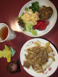 牛丼・サラダ・さくら餅を36食提供しました(^o^)