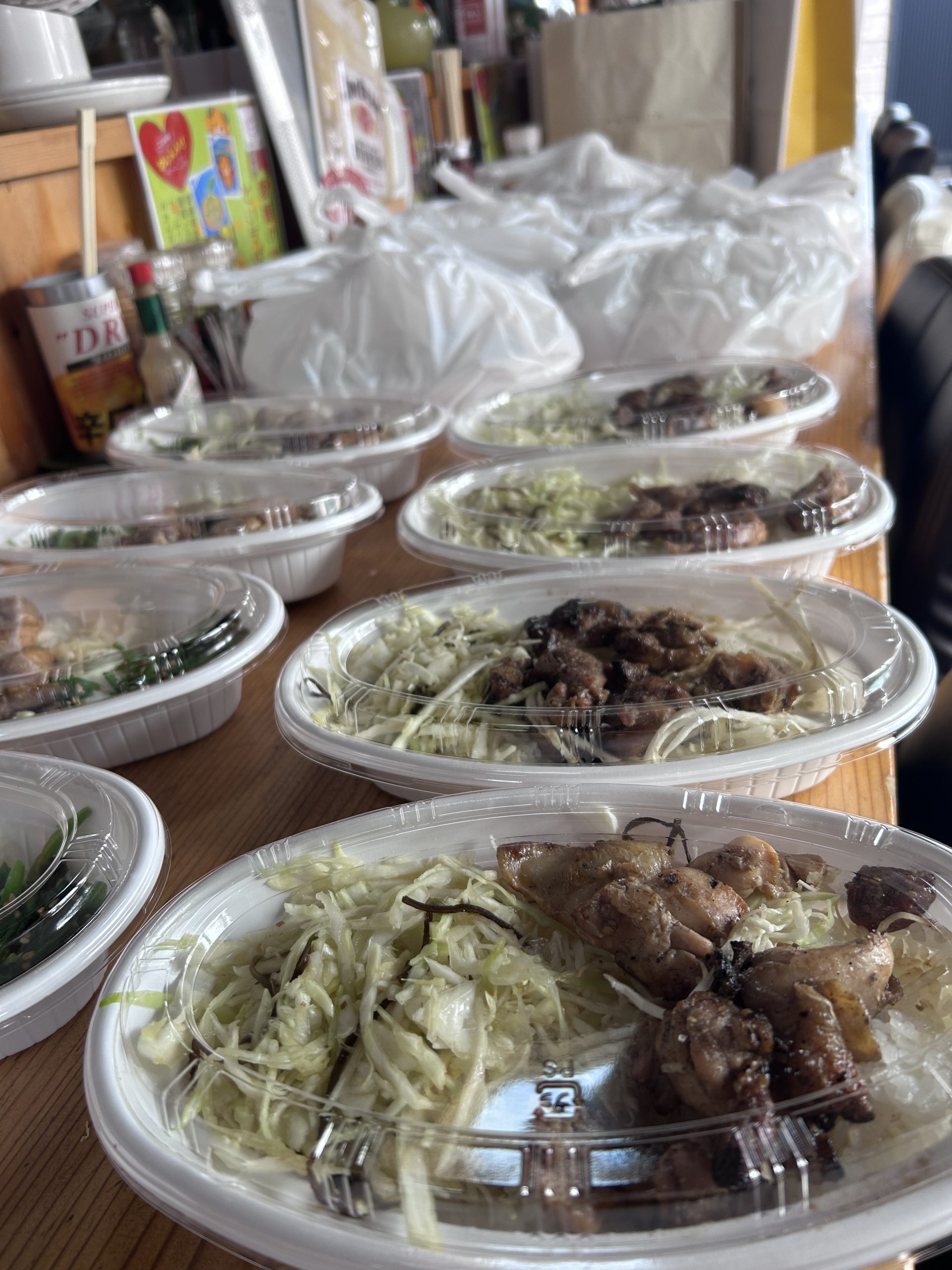 炭火やきとりとほうれん草の和物を75食提供しました(^O^)/