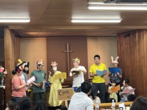 5/23 教会こども食堂 2025.06.122025.05.23 17:00~18:30 カレーライス、サラダ、フルーツポンチ 90食提供しました。 みんなだーいすきのみなさんが、ミュージカル「どうぞのイス」や歌を披露してくださいました!