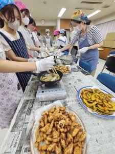 野菜と魚のかき揚げ、ポテトサラダ、おにぎりを82食提供しました(^-^)♪