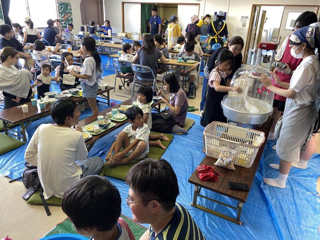 7/26 久枝子ども食堂 2025.08.012025.07.26 17:00~18:30 そうめん(きゅうり・ハム・炒り卵・なす天・かきあげ)・ジビエソーセージ・フライドポテト・ポップコーン・わたがし・プリンを75食提供しました(*^^*) 「夕涼み会」として子どもコーナーを設け、ゆっくり食べて楽しく遊べる場を提供しました🎵
