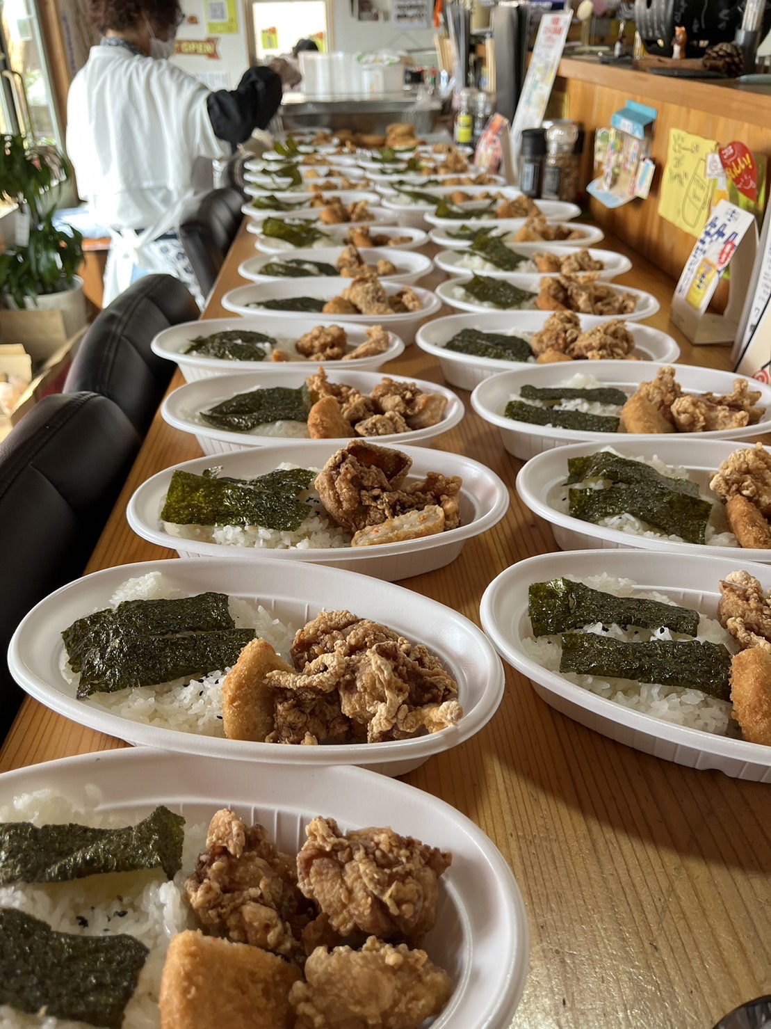 唐揚げのり弁当&ポテサラを70食提供しました(^^)/
