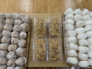 8/23 OKiDoKi 2024.08.282024.08.23 17:00-20:30 五目おむすび・塩おむすび・けんちん汁・筍の土佐煮・じゃがいも・フルーツタルト・河内晩柑ゼリーを40食提供しました(^-^)