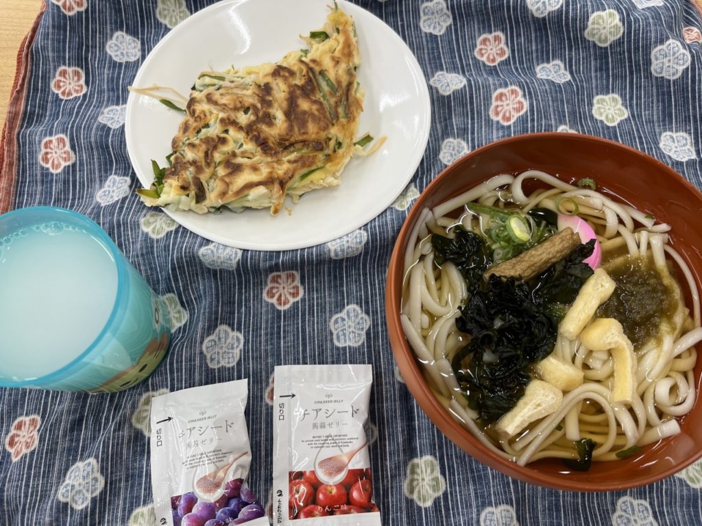 うどん・米粉のチヂミ・カルピスorコーヒー・ゼリーを40食提供しました\(^o^)/