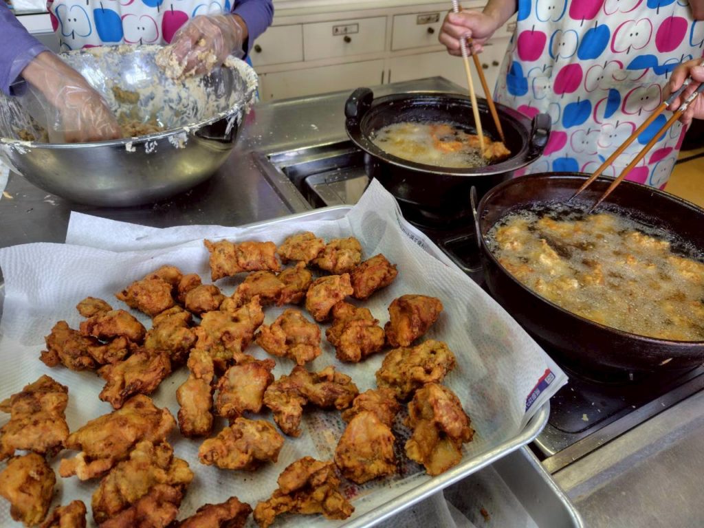 9/24 星岡なかよし子ども食堂 2025.10.032025.09.24 16:00~18:00 鶏の唐揚げ、肉じゃが、キュウリの酢の物、フルーツゼリー、ごはんを80食提供しました(*^^*) 保存食の青菜ごはん梅じゃこご飯を配りました🎵フードドライブの品物も手渡しました🎵