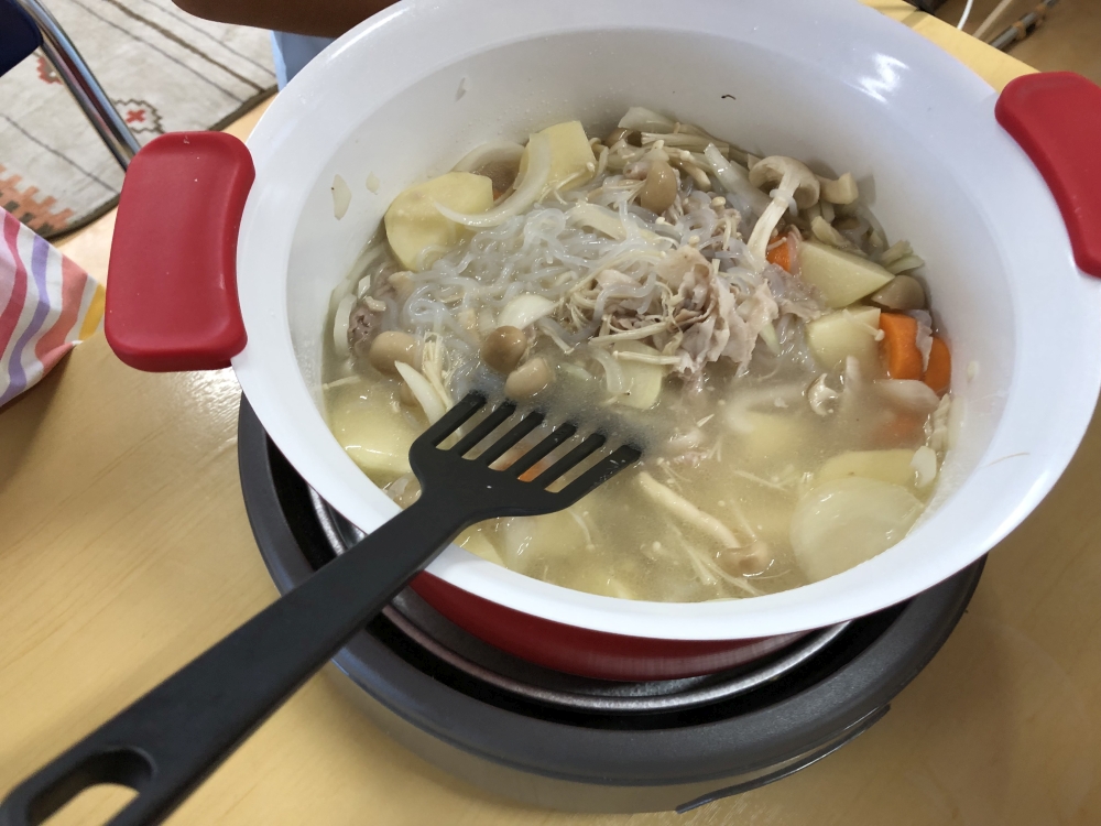 10時~14時にて、肉じゃが・なす焼き・きのこ汁・ご飯をみんなで食べました(^^)