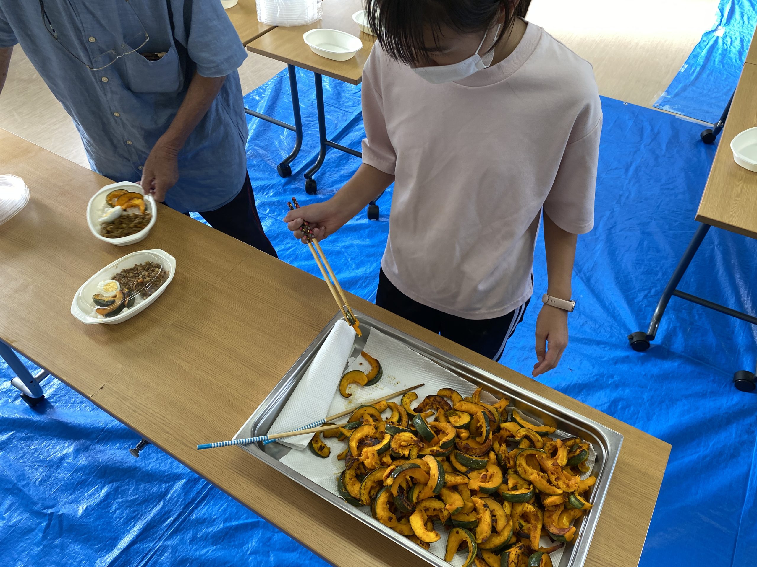 ドライカレーセット、黒ごま&きなこ団子、パントリー商品を150食提供しました(*^^*)