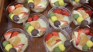17:30~19:00 カレー、マカロニサラダ、柚大根、プリンアラモードを70食提供しました\(^o^)/
