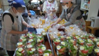 16:00~18:00 甘酢鶏レンコン、ポテトサラダ、切り干し大根の煮物、栗ご飯、リンゴのお弁当を87食提供しました\(^o^)/ ハロウィンのお菓子とお茶をプレゼントしました🎃