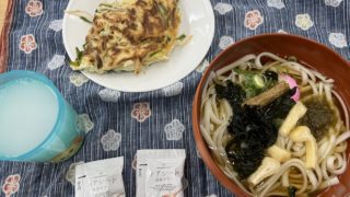 うどん・米粉のチヂミ・カルピスorコーヒー・ゼリーを40食提供しました\(^o^)/