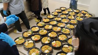 カレーピラフ、春キャベツのサラダを79食提供しました(^^)/