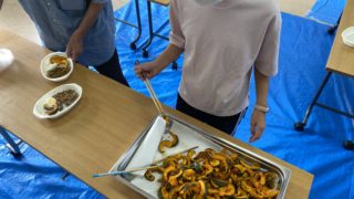菜飯・サバの甘酢あんかけ・さといもの煮っころがし・大根サラダ・ミートソーススパゲッティ・坊っちゃん団子・パントリーを150食提供しました(^o^)