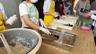 ごはん・豚肉の生姜焼き・タコの酢物・ひじきの和え物・だし巻き卵焼きを180食提供しました(^o^)