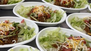 お弁当(チキンライス・ミートボール・からあげ他)を50食提供しました(^o^)