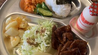大根とチキンの煮込み、サラダ、レタス、人参と大根のなます、スープ、ごはんを30食提供しました(^o^)