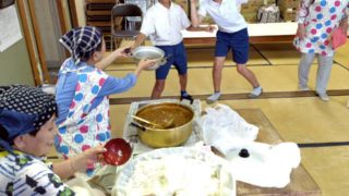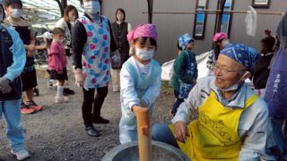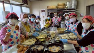 豚汁 フルーツポンチ 餡餅 あべかわもちを75食提供しました(^o^)