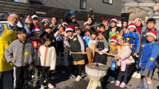 つきたてのお餅を星ぐるまメンバーさんと子どもたちが高齢者宅に届け...
