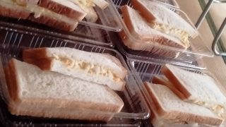 愛媛オレンジバイキングス様から頂いた卵を使って卵サンドウィッチをいつも来ていただいてる方に15食無料配布しました!