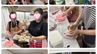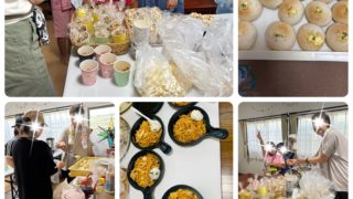 クリームシチュー サーモンカレームニエル キャベツと人参とコーンの煮物 ご飯 紅まどんな クレープみかん添え コーヒー等を40食提供しました(^o^)